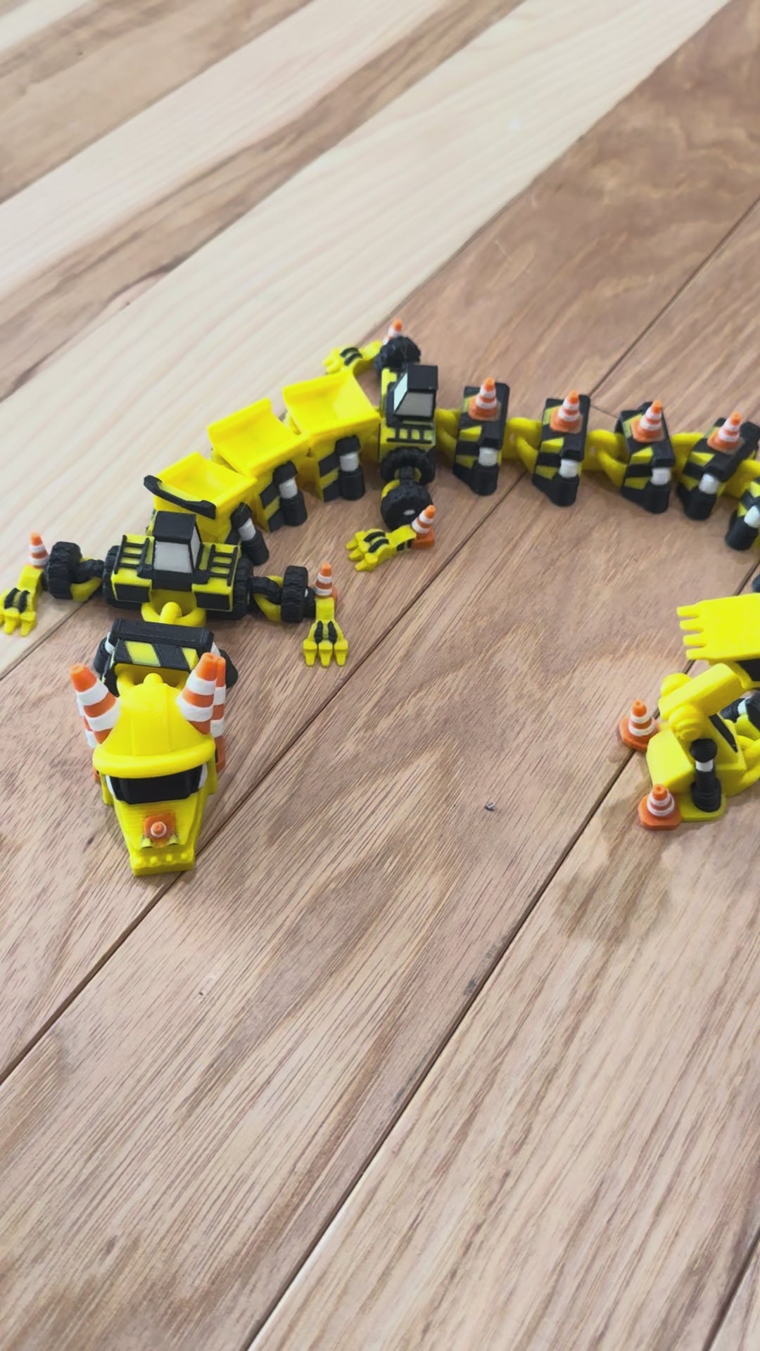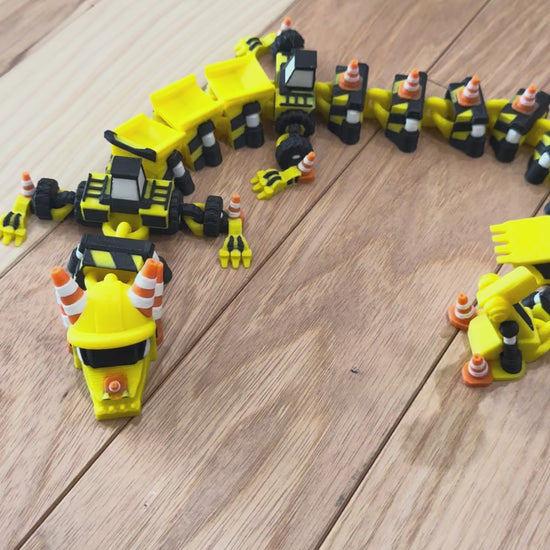 Construction vehicle dragon featuring a moving bucket end